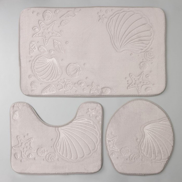 Набор ковриков для ванны и туалета Доляна «Морское дно», 3 шт: 50×80, 50×40, 38×43 см, цвет серый
