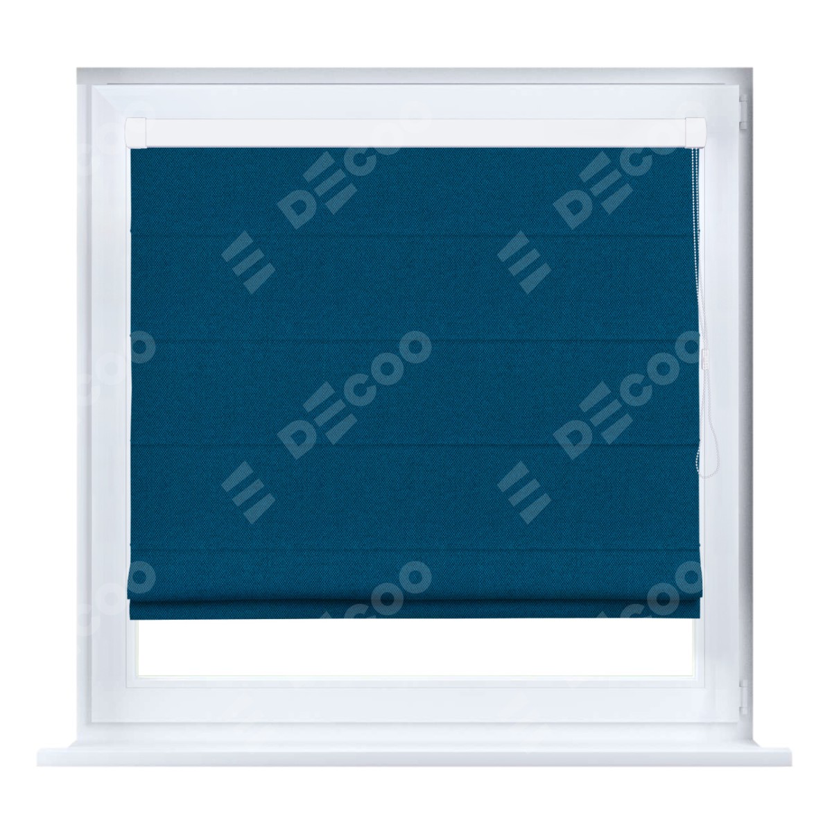 Римская штора кассетного типа, производителя «Cortin», устанавливается только на пластиковые окна и прилегает к стеклопакету, пошита из ткани лён димаут синий, артикул 16260.