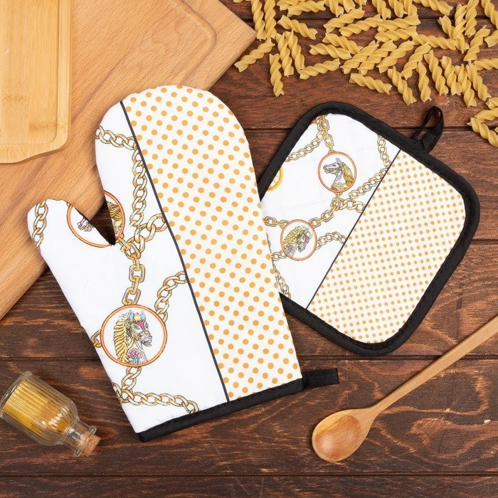 Кухонный набор (2 предмета) Этель «Горох», прихватка 17×17 см, варежка 26×16 см, 100% п/э