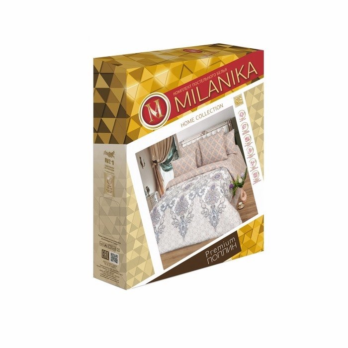 Постельное бельё евро Миланика Медальон 200х217см, 217×240 см, 70х70см 2 шт, поплин 117г/м, хлопок 100%