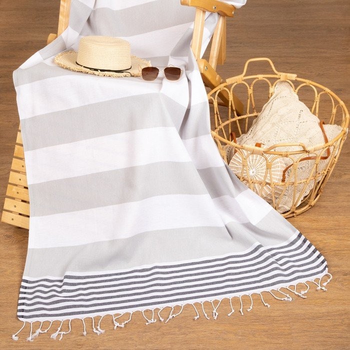 Пештемаль для пляжа, бани, сауны «Фортуна» 100×180 см, серый