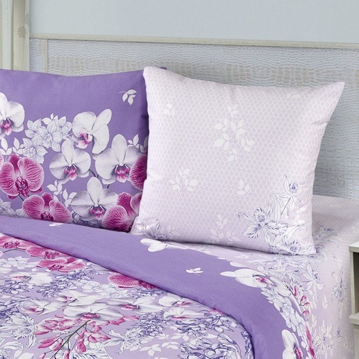 Постельное бельё евро Миланика Орхидеи 200х217см, 217×240 см, 70х70см 2 шт, бязь 125г/м, хлопок 100%