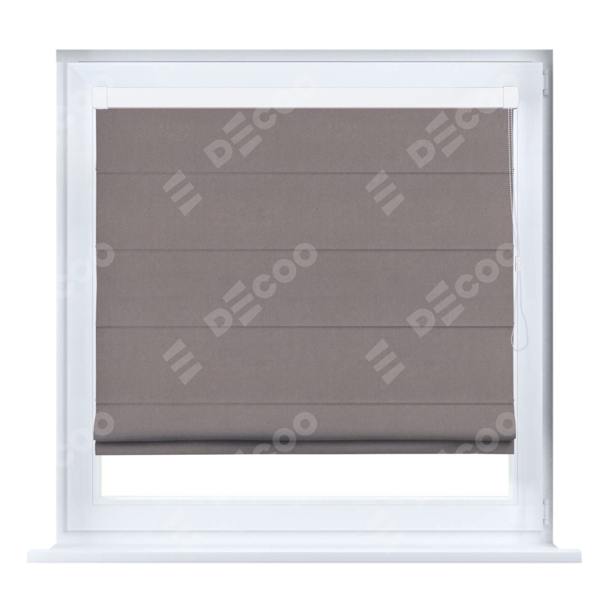 Римская штора производителя «Cortin», устанавливается на створку окна, пошита из ткани вельвет тёмно-бежевый, артикул 82527. Штора шьётся по индивидуальным размерам, для данного типа римской шторы возможная ширина от 35 до 150 см., высота до 250 см.