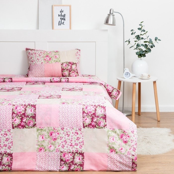Постельное бельё Экономь и Я 1,5 сп «Цветы» 143×215 см, 145×214 см, 50×70 см-1шт, 60 г/м2, микрофибра