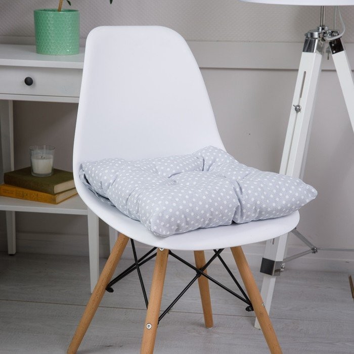 Подушка на стул Горошек 40х40см, рогожка, 150 г/м2, холлофайбер