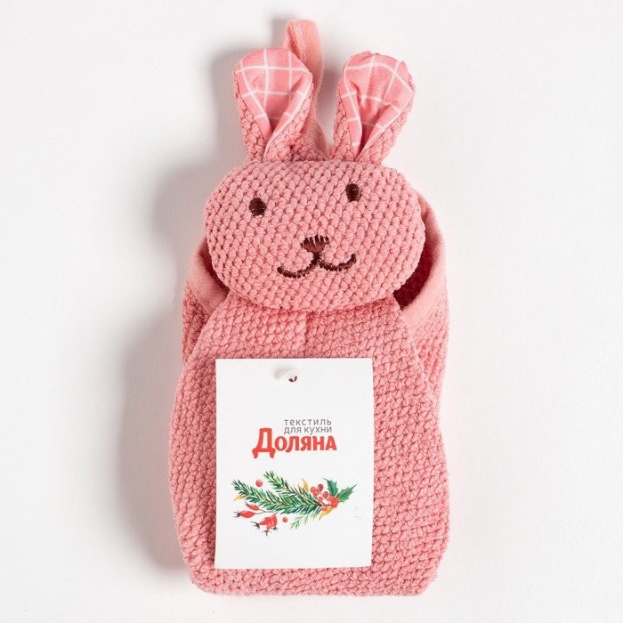 Полотенце кухонное Доляна «Заяц», цв. розовый 30*30 см 280гр/м2