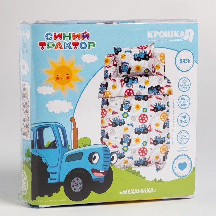 Постельное бельё Синий трактор «Механика» 112×147 см, 60×120+20 см, 40×60 см, 100% хлопок, бязь 125 г/м2