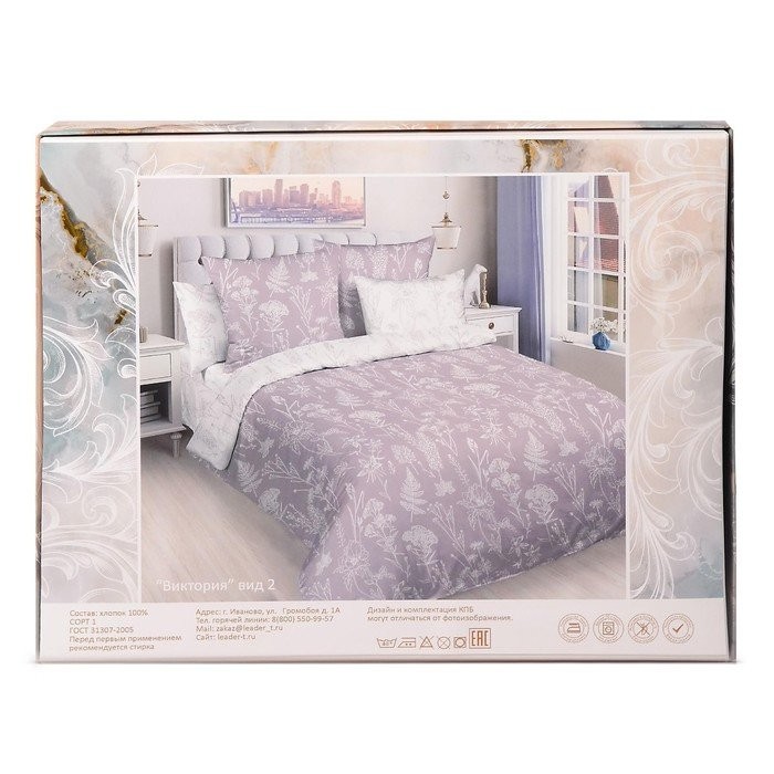 Постельное бельё 2сп ЛидерТекс Виктория 2 полукор 175×215, 200×220, 70×70 2шт, поплин 110гр/м хл100%