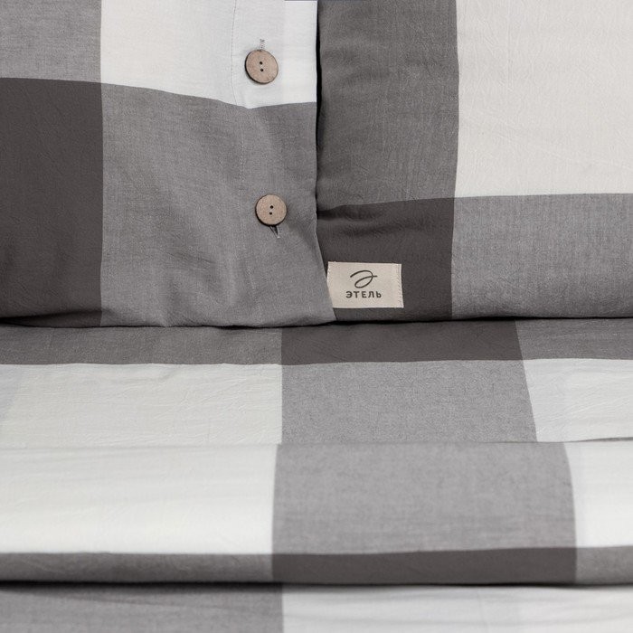 Постельное бельё Этель 1.5 сп «Серая клетка» 155×210 см,160×240 см, 50×70−2шт, 100% жатый хлопок,140гр/м2
