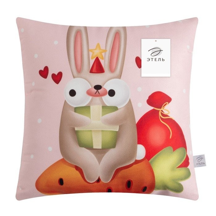Подушка декоративная «Зайчик на морковке», 40*40 см, 100% п/э, велюр