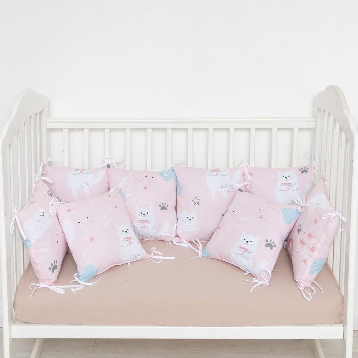 Бортики в кроватку Крошка Я «Sweet cats» (35×35 см — 8 шт), 100% хлопок