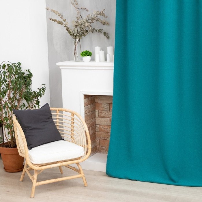 Штора портьерная Этель «Структурная», цвет синий, на шторной ленте, 130×300 см, 100% п/э