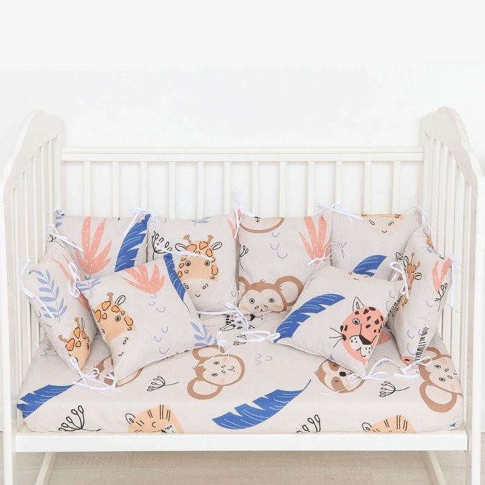 Бортики в кроватку Крошка Я «African friends» (35×35 см — 8 шт),100% хлопок