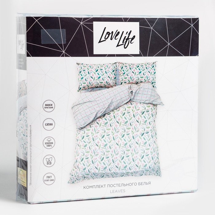 Постельное бельё LoveLife 2сп Leaves 175×215 см, 200×225 см, 50х70см-2шт, 100%хлопок, сатин, 125г/м