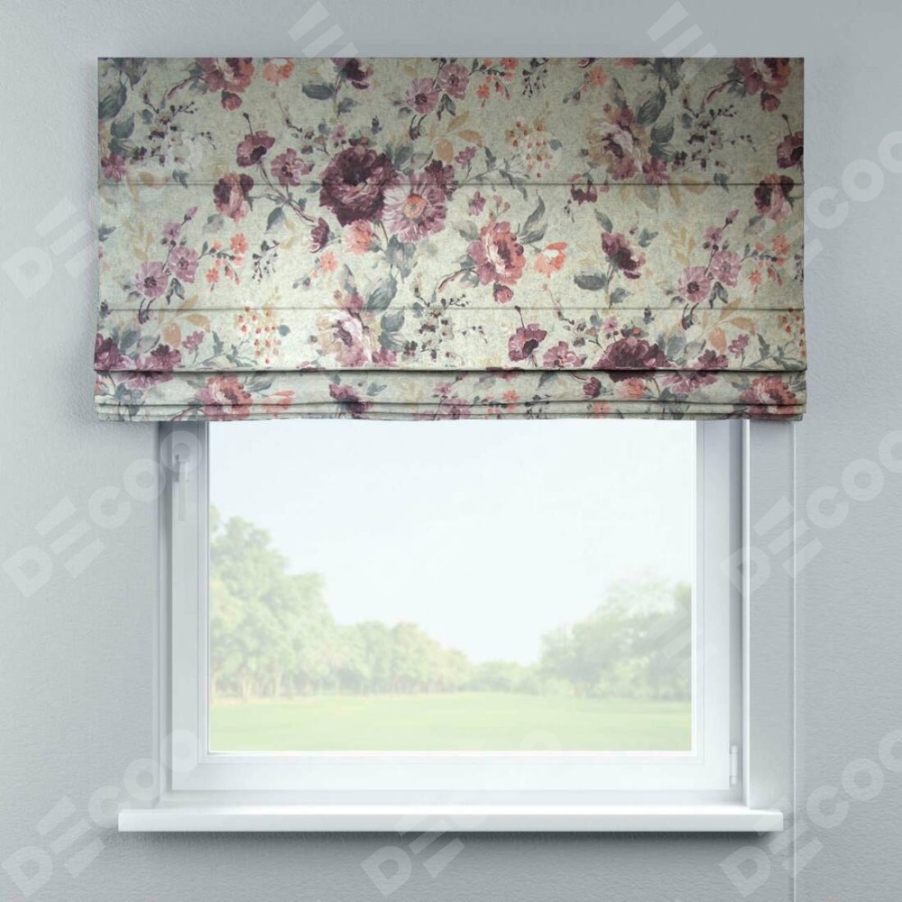 Римская штора производителя «Cortin», используется для проёма, пошита из ткани «Пионы». Имеет универсальный механизм и подходит для монтажа: на потолок, на стену и в нишу.