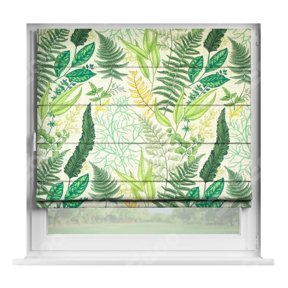 Римская штора производителя «Cortin», устанавливается на створку окна, пошита из ткани «Весна». Штора шьётся по индивидуальным размерам, для данного типа римской шторы возможная ширина от 35 до 150 см., высота до 250 см.