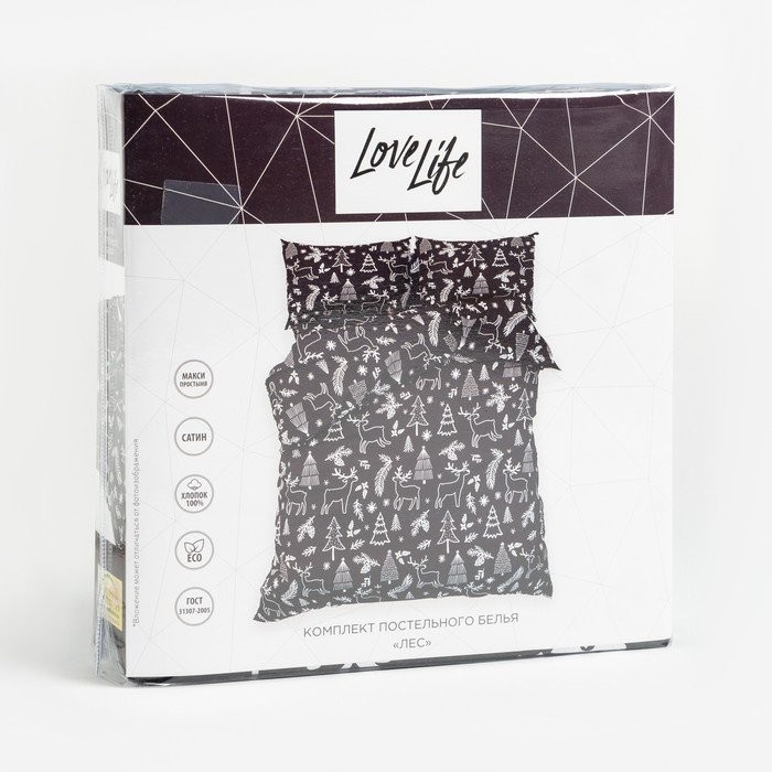 Постельное бельё LoveLife Дуэт «Лес» 143×215 см-2шт, 225×240 см, 50×70 см-2шт, 100%хлопок, сатин