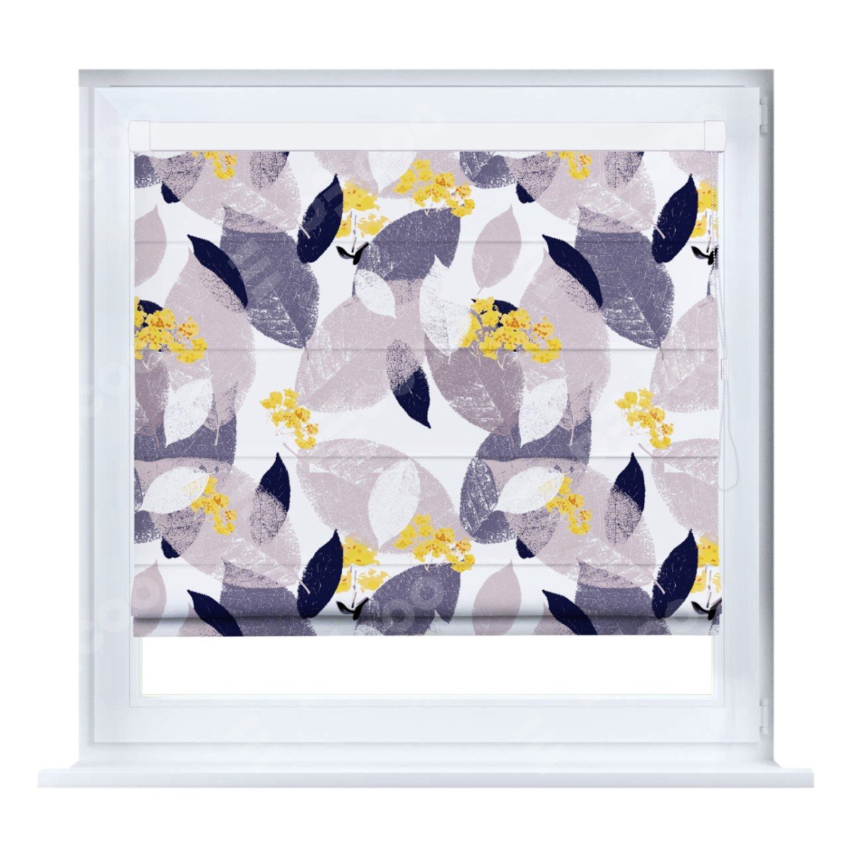 Римская штора кассетного типа, производителя «Cortin», устанавливается только на пластиковые окна и прилегает к стеклопакету, пошита из ткани блэкаут с нанесением сублимационной печати «Листопад».