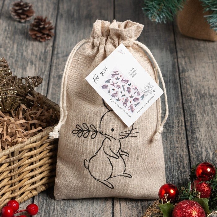 Набор в мешочке Этель Christmas bunnies: полотенце 40×73 см, формочки для запекания — 3 шт.