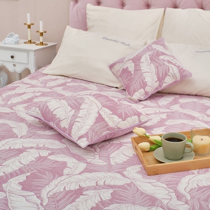 Покрывало хлопковое Этель «Перья» 150×240 см, цвет фиолетовый, 100% хлопок, 300гр/м2