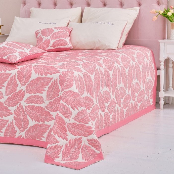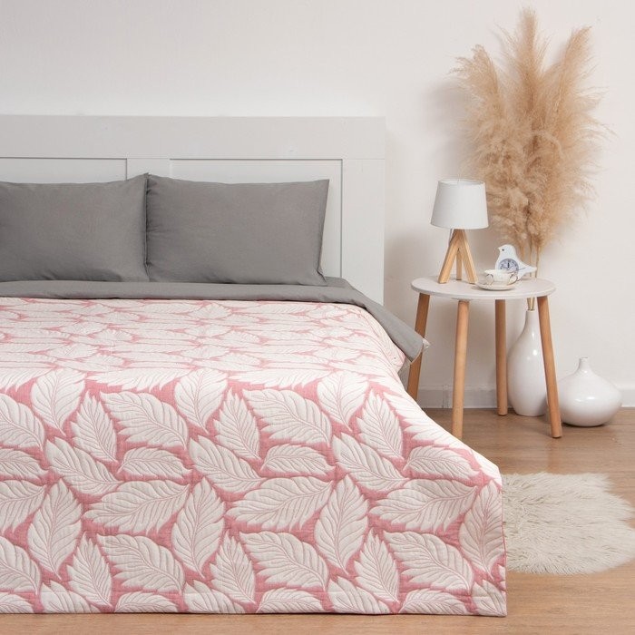 Покрывало хлопковое Этель «Листопад» 150×240 см, цвет розовый, 100% хлопок, 300гр/м2