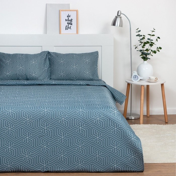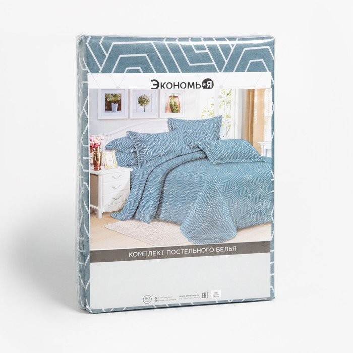 Постельное бельё 2сп Экономь и Я «Синяя геометрия» 173х215см, 175х214см, 50х70см-2 шт, 60г/м2 микрофибра