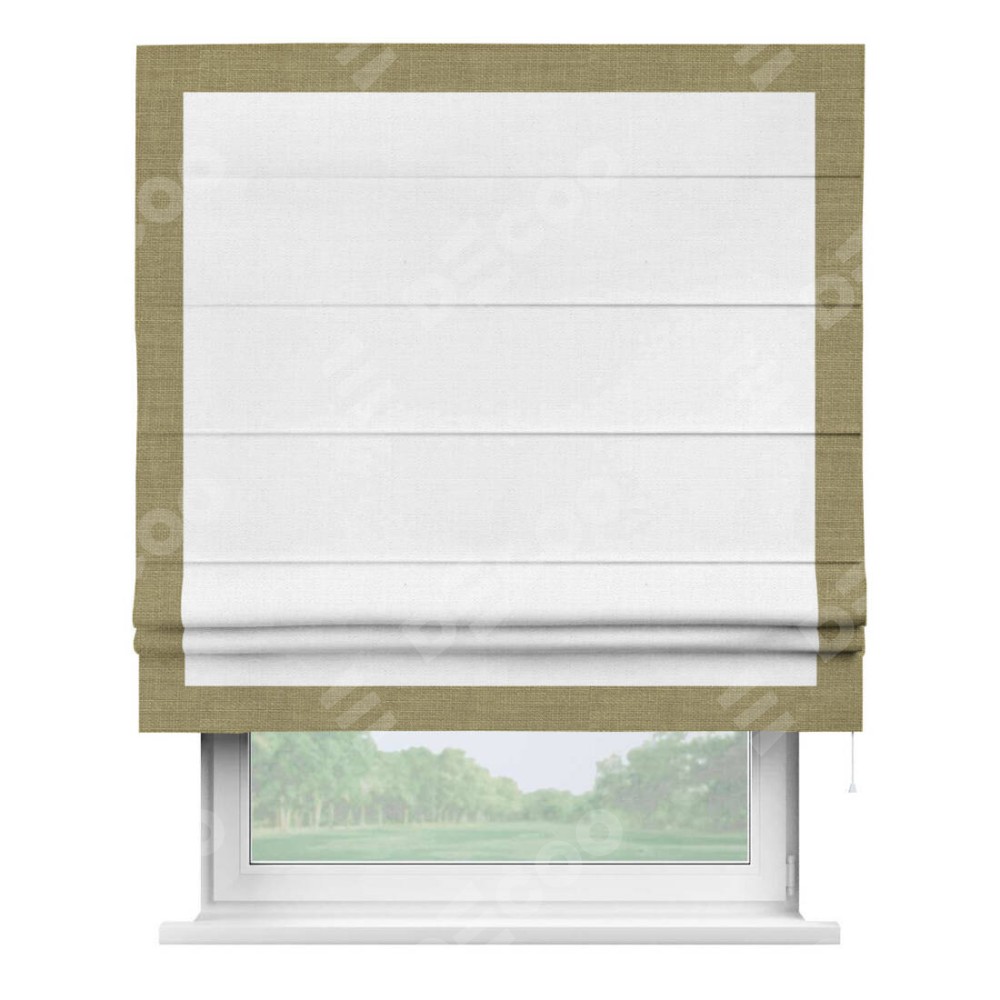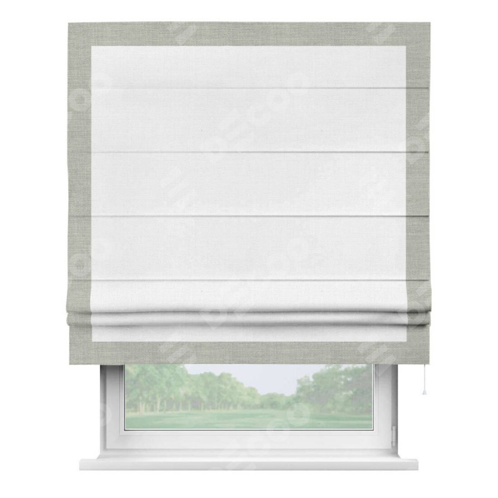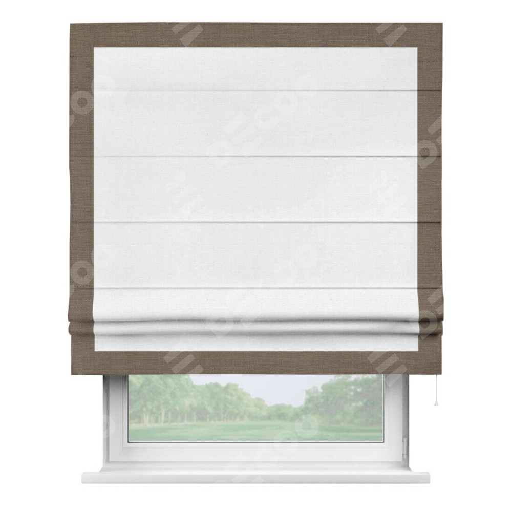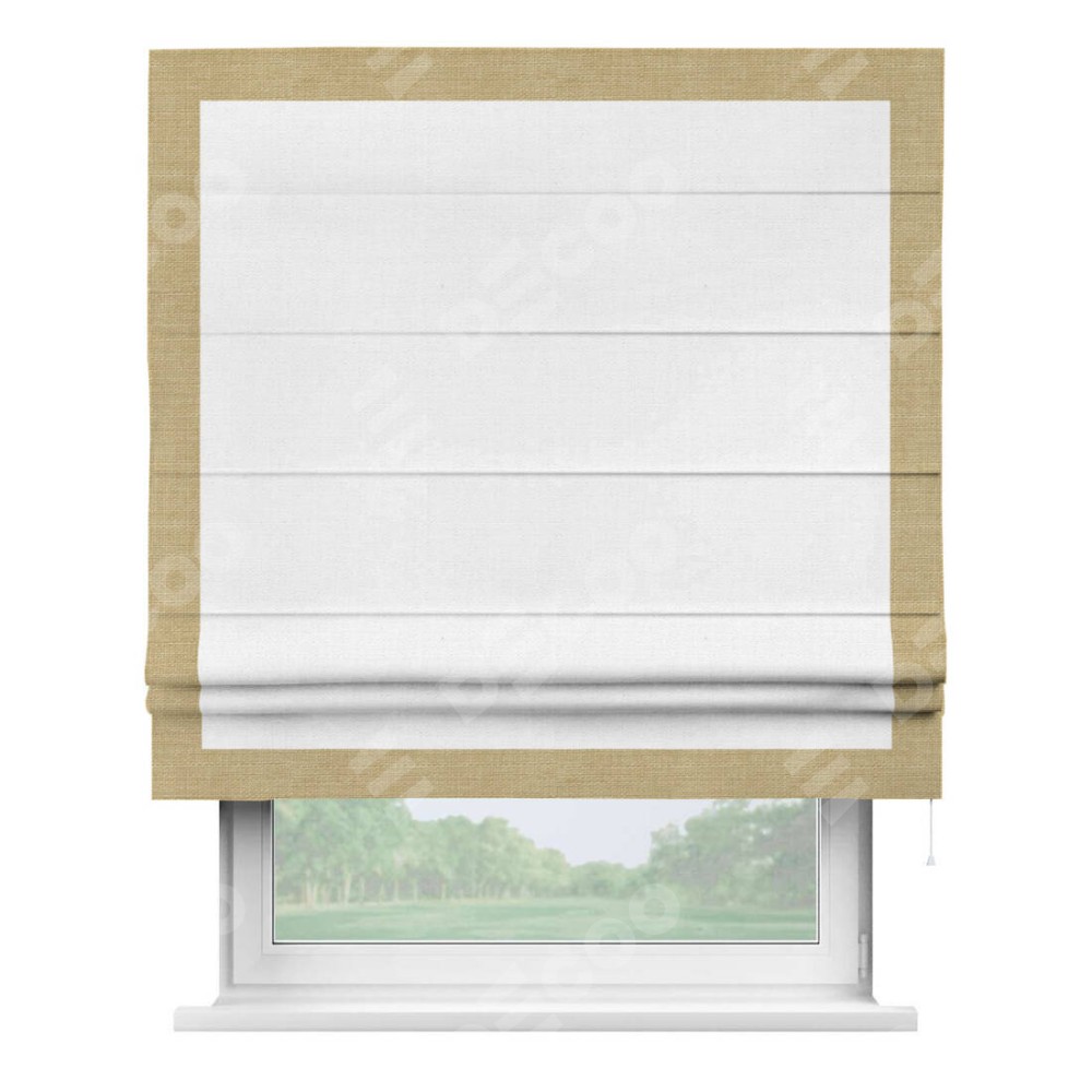 Римская штора «Кортин» с кантом Чесс, для проема, ткань лён белый