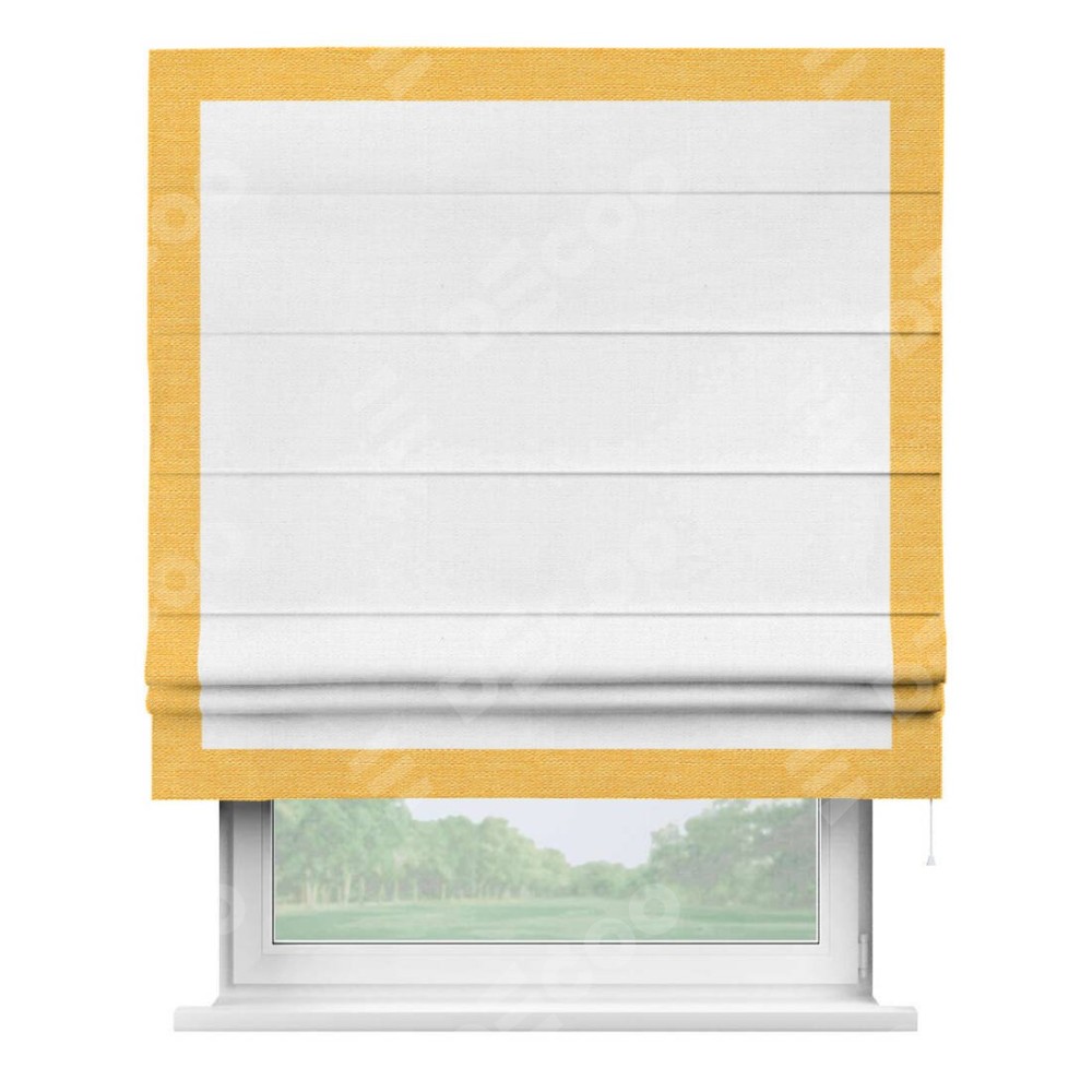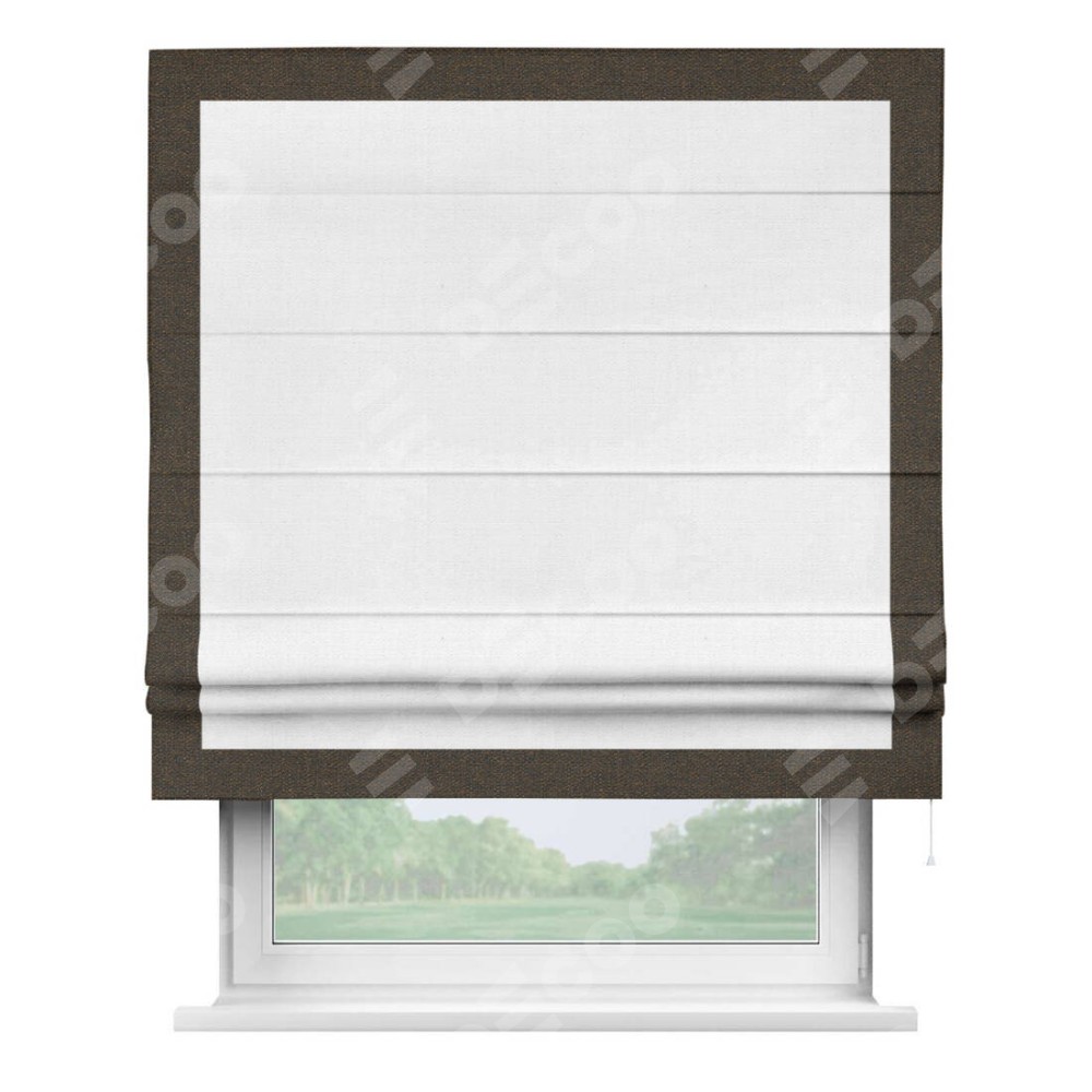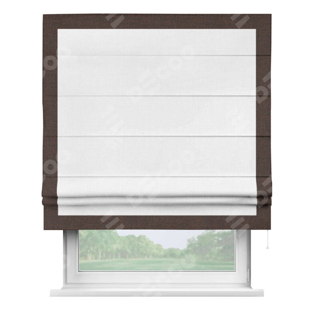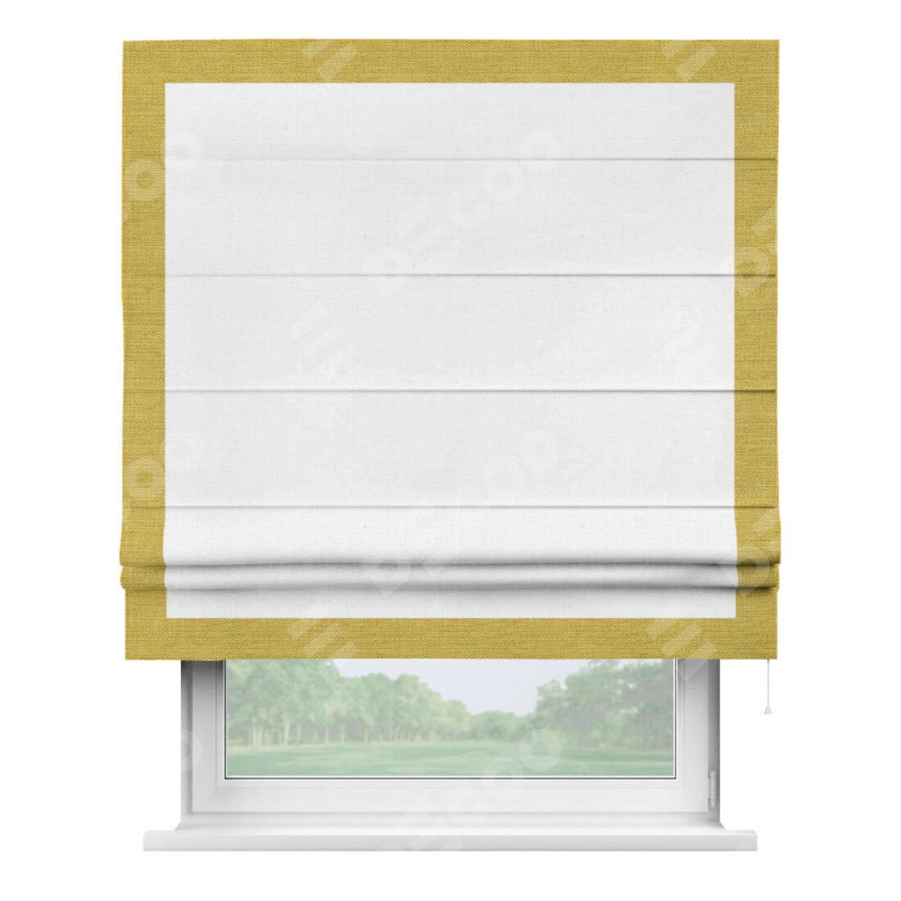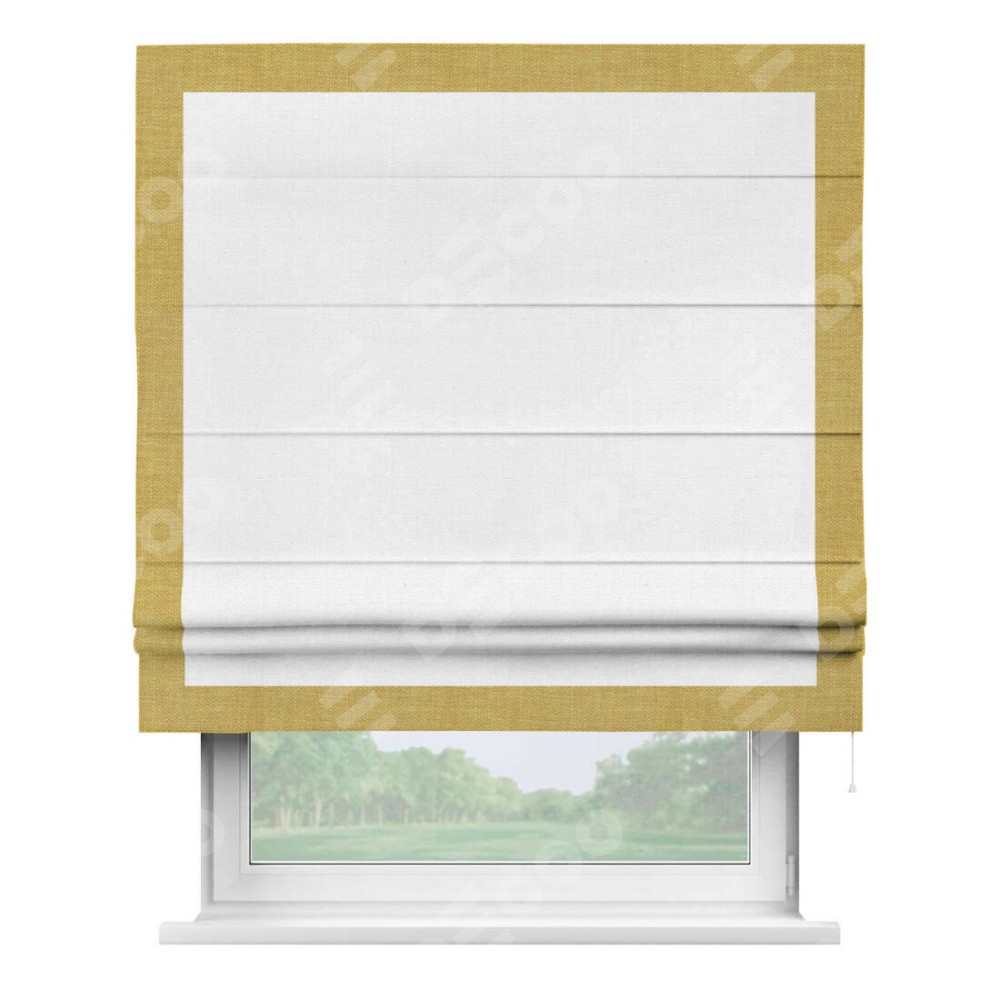 Римская штора «Кортин» с кантом Чесс, для проема, ткань лён белый