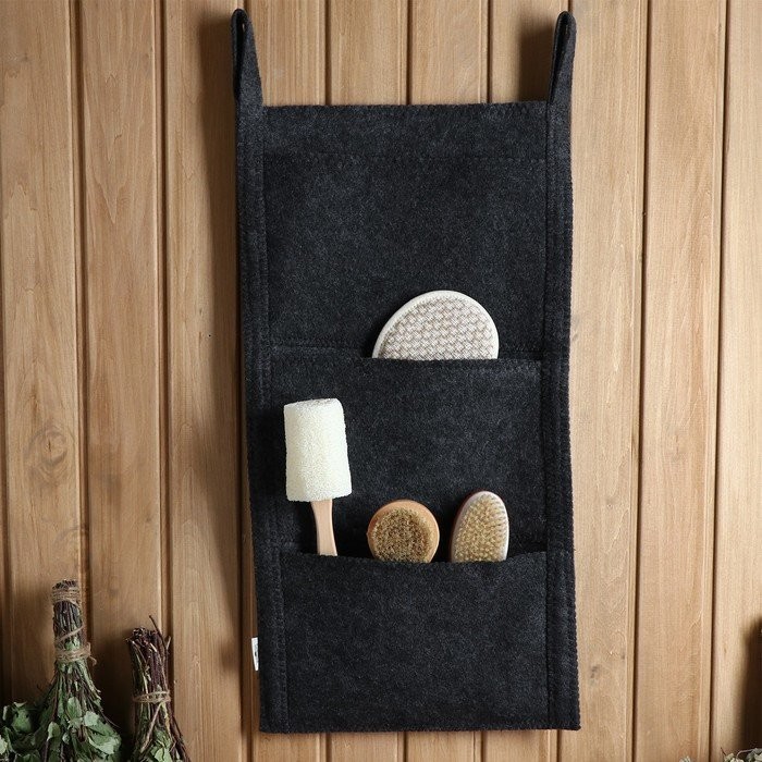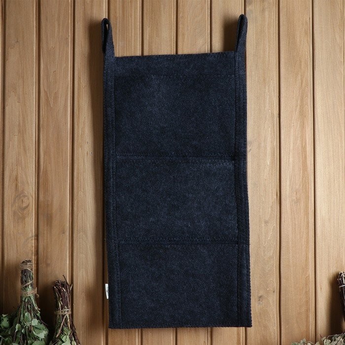 Коврик банный настенный, войлок, 3 кармана 79×36 см черный