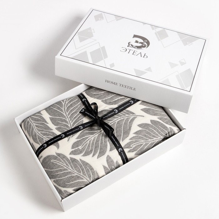 Покрывало хлопковое Этель «Листопад» 180×240 см, цвет серый, 100% хлопок, 300гр/м2