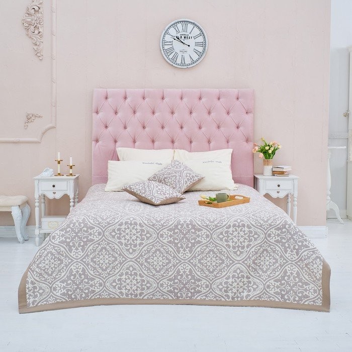 Покрывало хлопковое Этель «Орнамент» 220×240 см, цвет серый, 100% хлопок, 300гр/м2