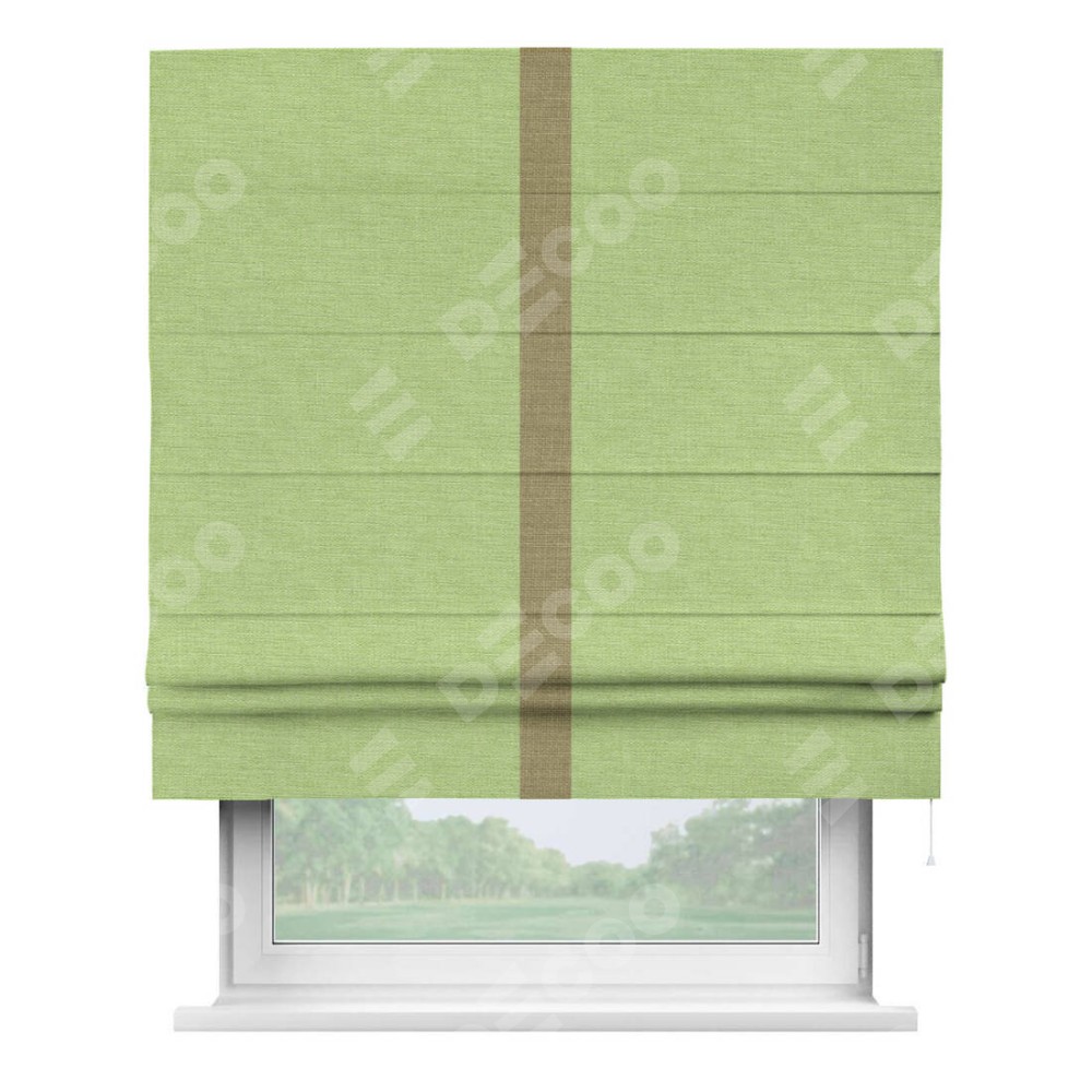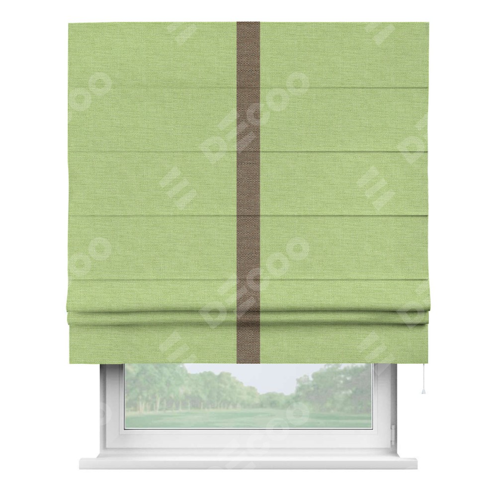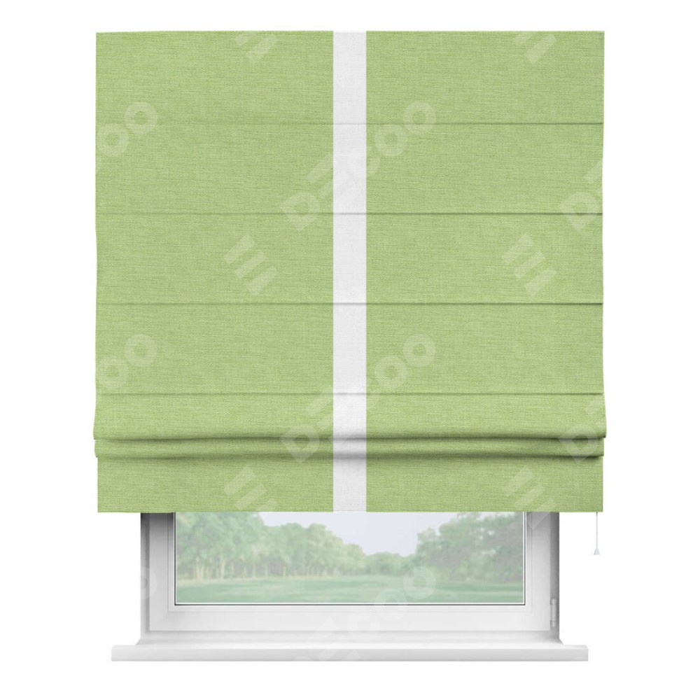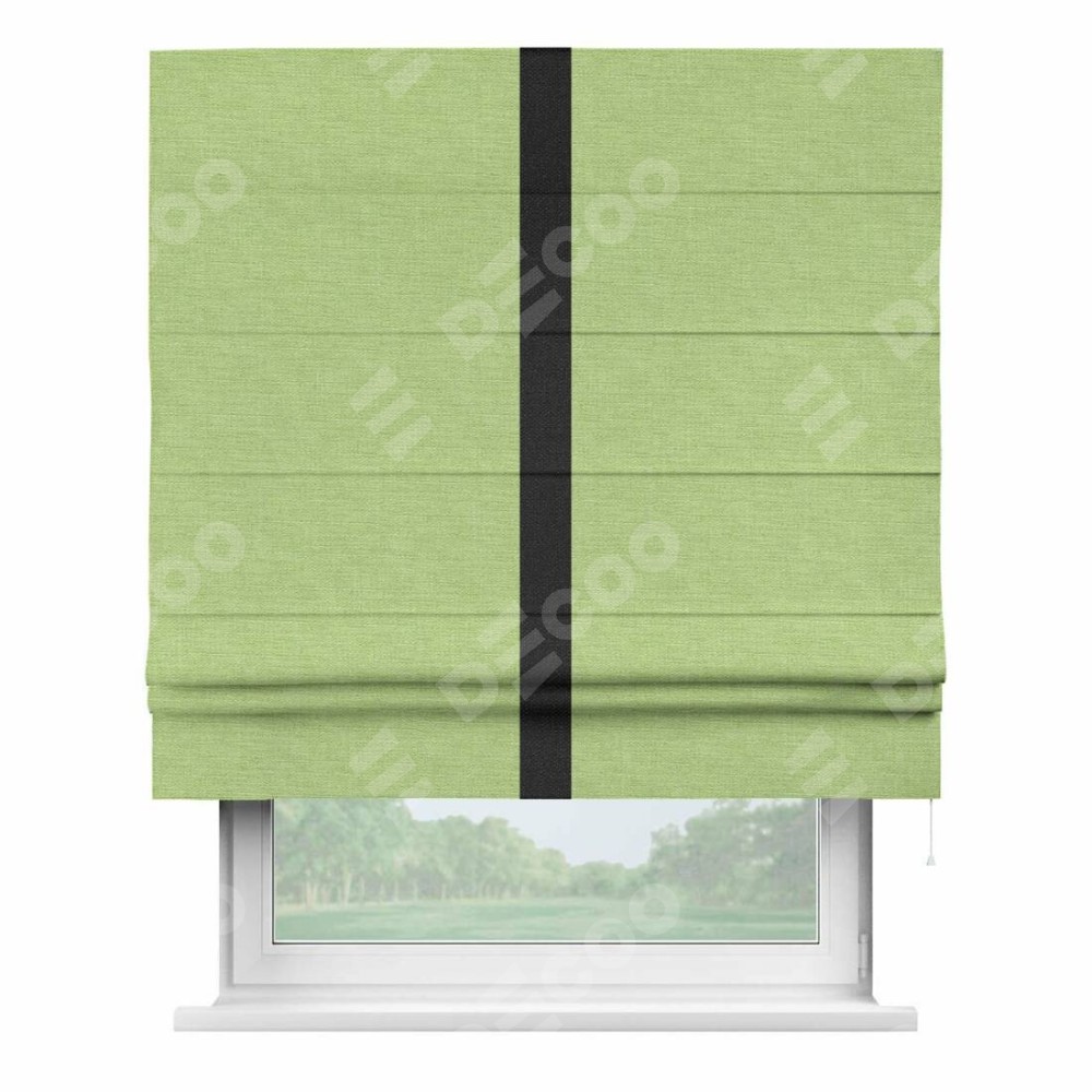 Римская штора «Кортин» с кантом Хайвэй, для проема, ткань лён зеленый