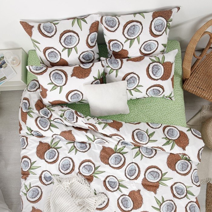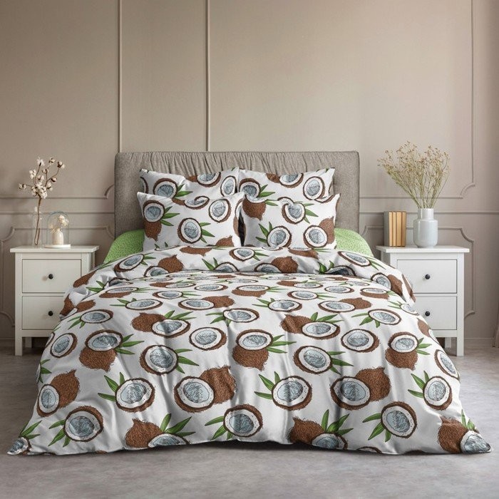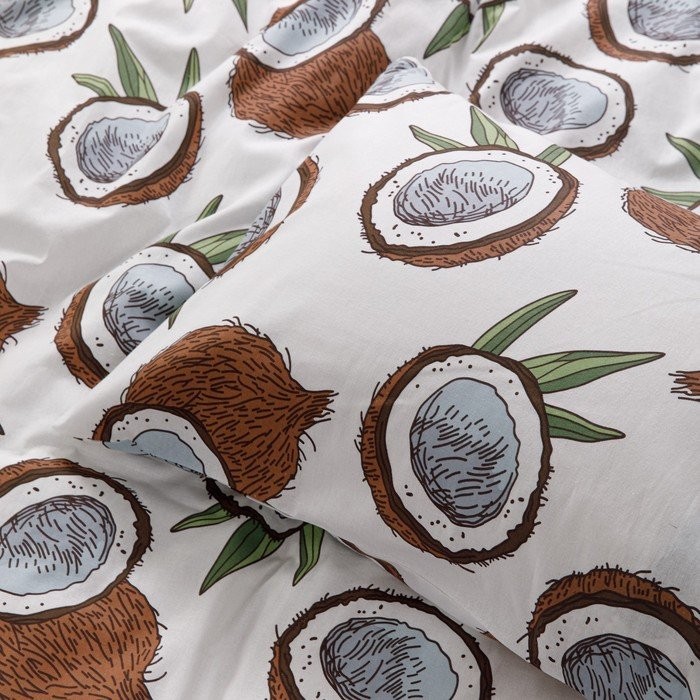 Постельное бельё Евро Ночь Нежна Кокосы 220×200 см, 220×200 см, 70×70 см 2шт, бязь, 120г/м², 100% хлопок