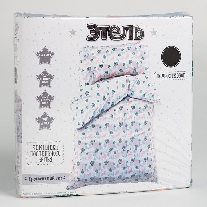 Постельное бельё Этель 1,5 сп «Тропический лес» 143×215 см, 155×214 см, 50×70 см -1 шт, 100% хлопок, сатин