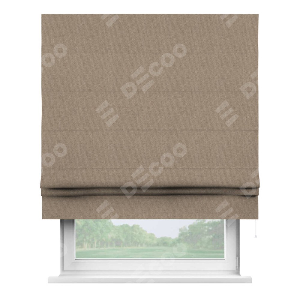 Римская штора производителя «Cortin», используется для проёма, пошита из ткани лён димаут светло-бежевый, артикул ткани 00002. Имеет универсальный механизм и подходит для монтажа: на потолок, на стену и в нишу.
