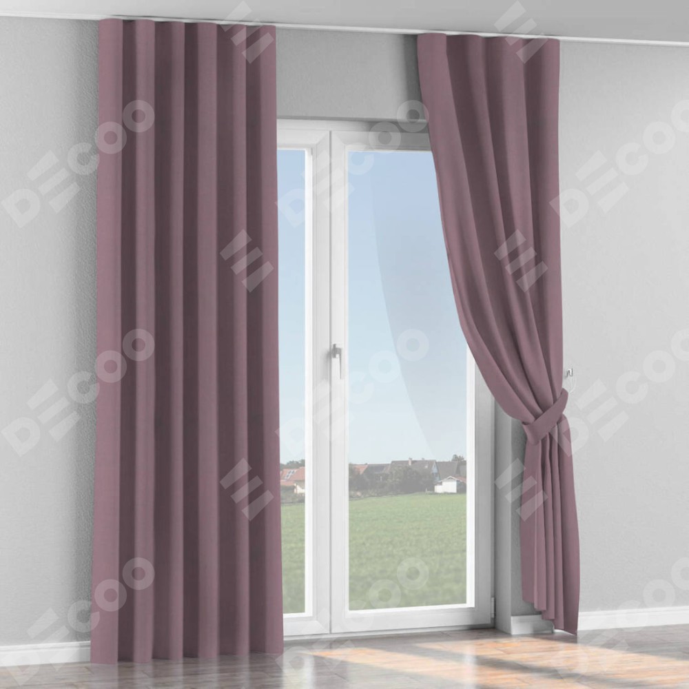Комплект прямых штор, от производителя «Cortin», пошиты из ткани блэкаут однотонный брусника, артикул ткани 88302. С изнаночной стороны в верхней части штор пристрачивается шторная лента с декоративными складками «Волна». Для создания элегантных складок прямые шторы шьются по стандарту с коэффициентом 1:2 (на 100 см. ширины проёма 200 см. ширины ткани).
