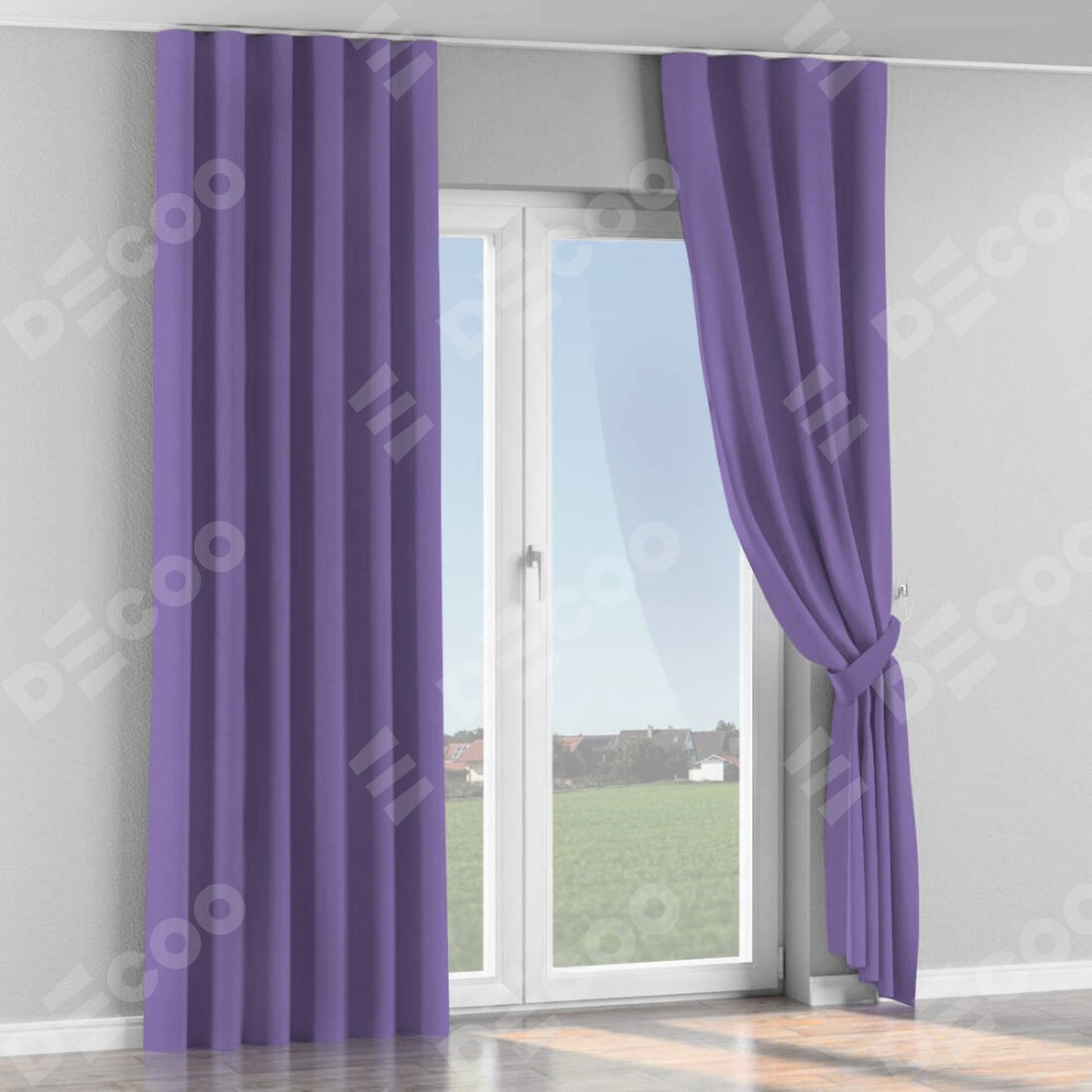 Комплект прямых штор, от производителя «Cortin», пошиты из ткани блэкаут однотонный сиреневый, артикул ткани 88305. С изнаночной стороны в верхней части штор пристрачивается шторная лента с декоративными складками «Волна». Для создания элегантных складок прямые шторы шьются по стандарту с коэффициентом 1:2 (на 100 см. ширины проёма 200 см. ширины ткани).