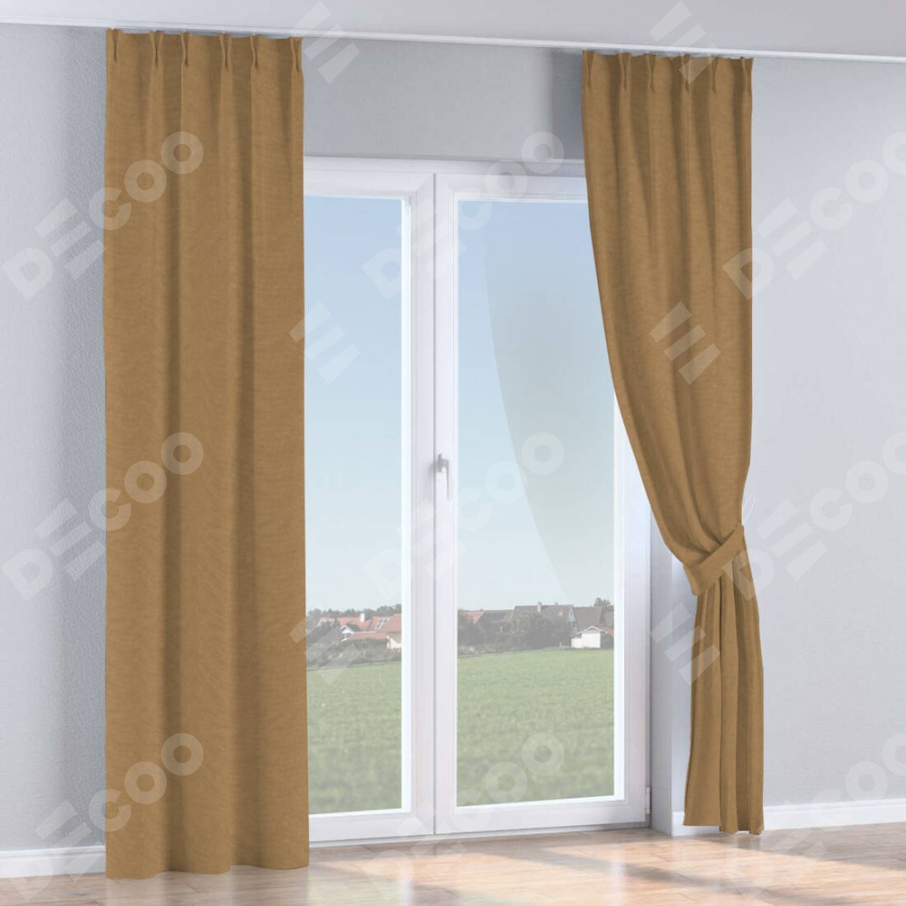 Комплект прямых штор, от производителя «Cortin», пошиты из ткани лён димаут коричневый, артикул ткани 83026. С изнаночной стороны в верхней части штор пристрачивается шторная лента с декоративными складками «Кустик». Для создания элегантных складок прямые шторы шьются по стандарту с коэффициентом 1:2 (на 100 см. ширины проёма 200 см. ширины ткани).