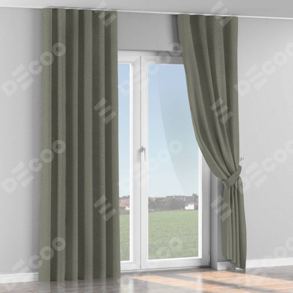 Комплект прямых штор, от производителя «Cortin», пошиты из ткани лён димаут стальной, артикул ткани 25. С изнаночной стороны в верхней части штор пристрачивается шторная лента с декоративными складками «Волна». Для создания элегантных складок прямые шторы шьются по стандарту с коэффициентом 1:2 (на 100 см. ширины проёма 200 см. ширины ткани).