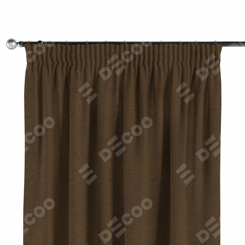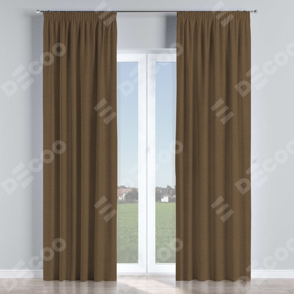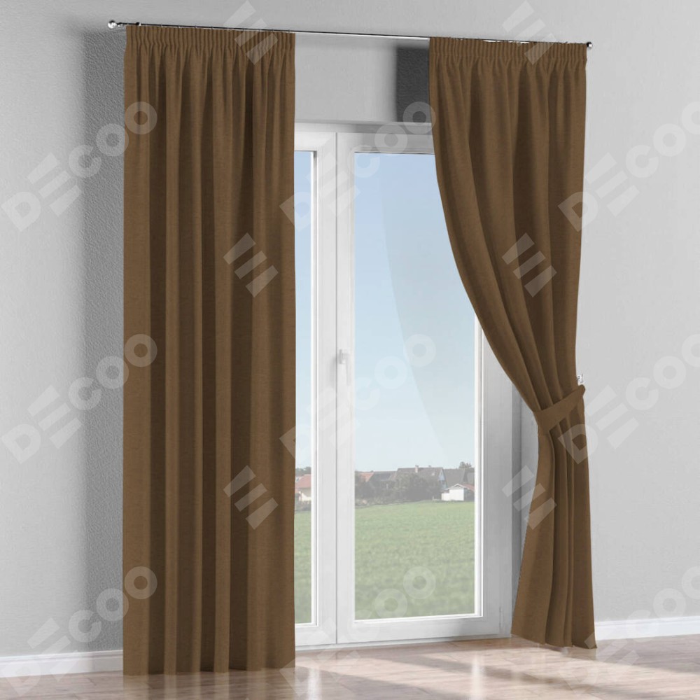 Комплект прямых штор, от производителя «Cortin», пошиты из ткани лён димаут тёмно-коричневый, артикул ткани 83030. С изнаночной стороны в верхней части штор пристрачивается шторная лента с декоративными складками «Карандаш». Для создания элегантных складок прямые шторы шьются по стандарту с коэффициентом 1:2 (на 100 см. ширины проёма 200 см. ширины ткани).