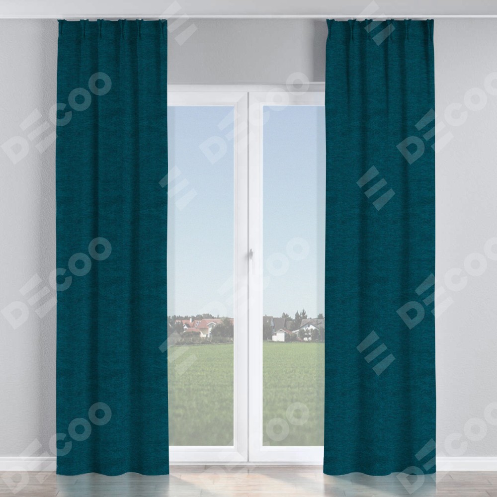 Комплект прямых штор, от производителя «Cortin», пошиты из ткани твид блэкаут глубокий синий, артикул ткани 21590. С изнаночной стороны в верхней части штор пристрачивается шторная лента с декоративными складками «Кустик». Для создания элегантных складок прямые шторы шьются по стандарту с коэффициентом 1:2 (на 100 см. ширины проёма 200 см. ширины ткани).