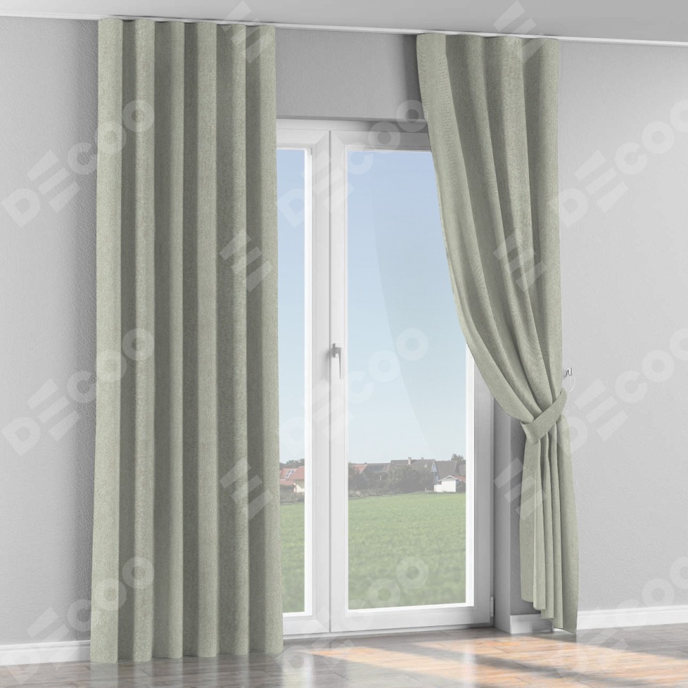 Комплект прямых штор, от производителя «Cortin», пошиты из ткани твид блэкаут коричнево-серый, артикул ткани 21574. С изнаночной стороны в верхней части штор пристрачивается шторная лента с декоративными складками «Волна». Для создания элегантных складок прямые шторы шьются по стандарту с коэффициентом 1:2 (на 100 см. ширины проёма 200 см. ширины ткани).