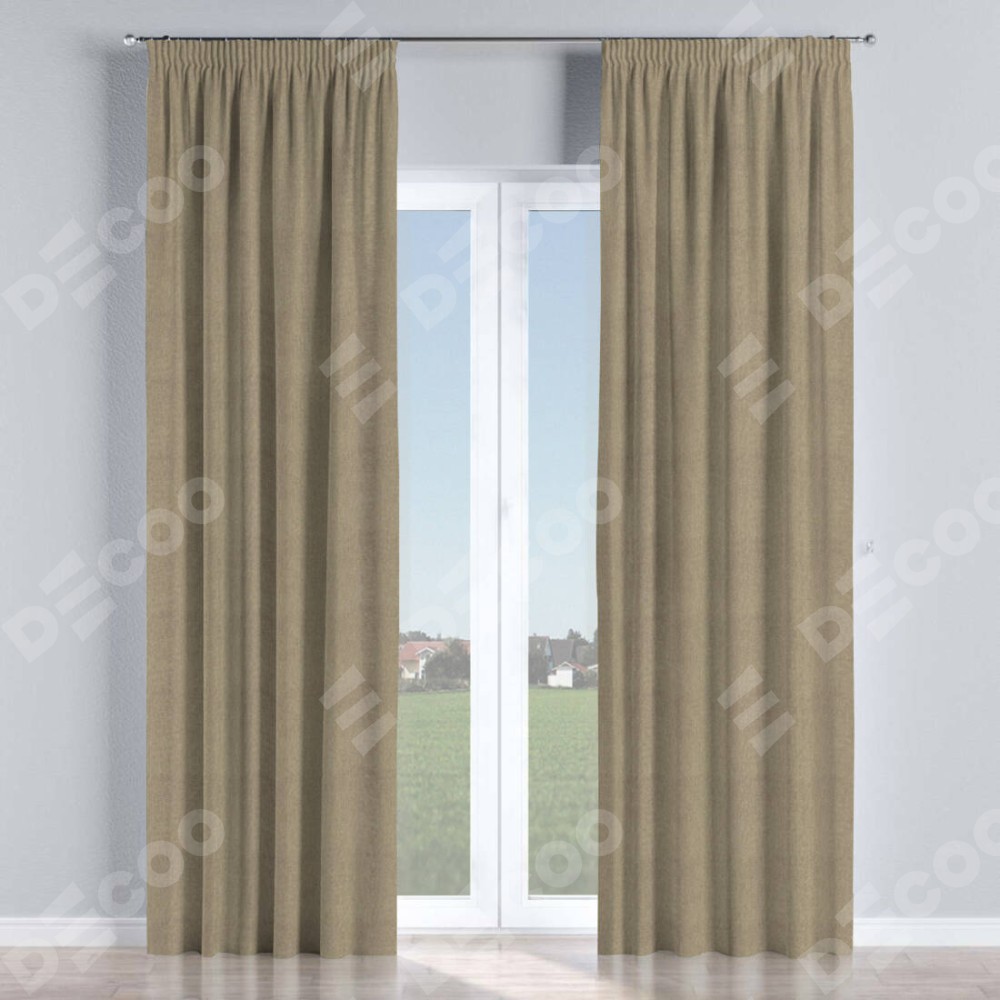 Комплект прямых штор, от производителя «Cortin», пошиты из ткани твид блэкаут кофе, артикул ткани 21575. С изнаночной стороны в верхней части штор пристрачивается шторная лента с декоративными складками «Карандаш». Для создания элегантных складок прямые шторы шьются по стандарту с коэффициентом 1:2 (на 100 см. ширины проёма 200 см. ширины ткани).