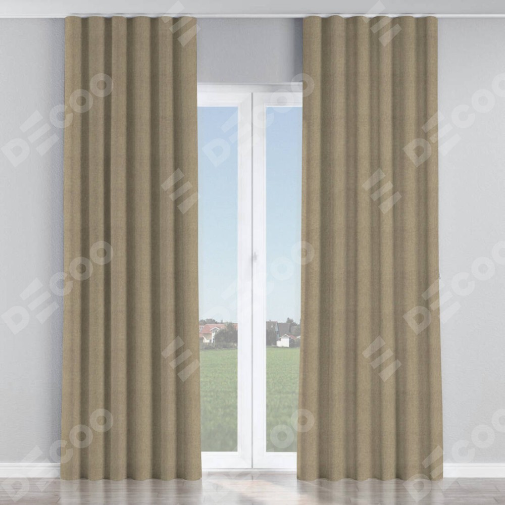 Комплект прямых штор, от производителя «Cortin», пошиты из ткани твид блэкаут кофе, артикул ткани 21575. С изнаночной стороны в верхней части штор пристрачивается шторная лента с декоративными складками «Волна». Для создания элегантных складок прямые шторы шьются по стандарту с коэффициентом 1:2 (на 100 см. ширины проёма 200 см. ширины ткани).