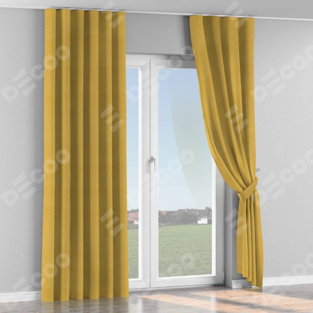 Комплект прямых штор, от производителя «Cortin», пошиты из ткани твид блэкаут пыльная горчица, артикул ткани 21588. С изнаночной стороны в верхней части штор пристрачивается шторная лента с декоративными складками «Волна». Для создания элегантных складок прямые шторы шьются по стандарту с коэффициентом 1:2 (на 100 см. ширины проёма 200 см. ширины ткани).