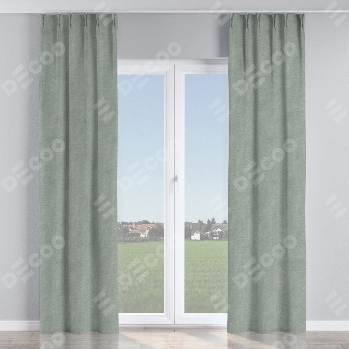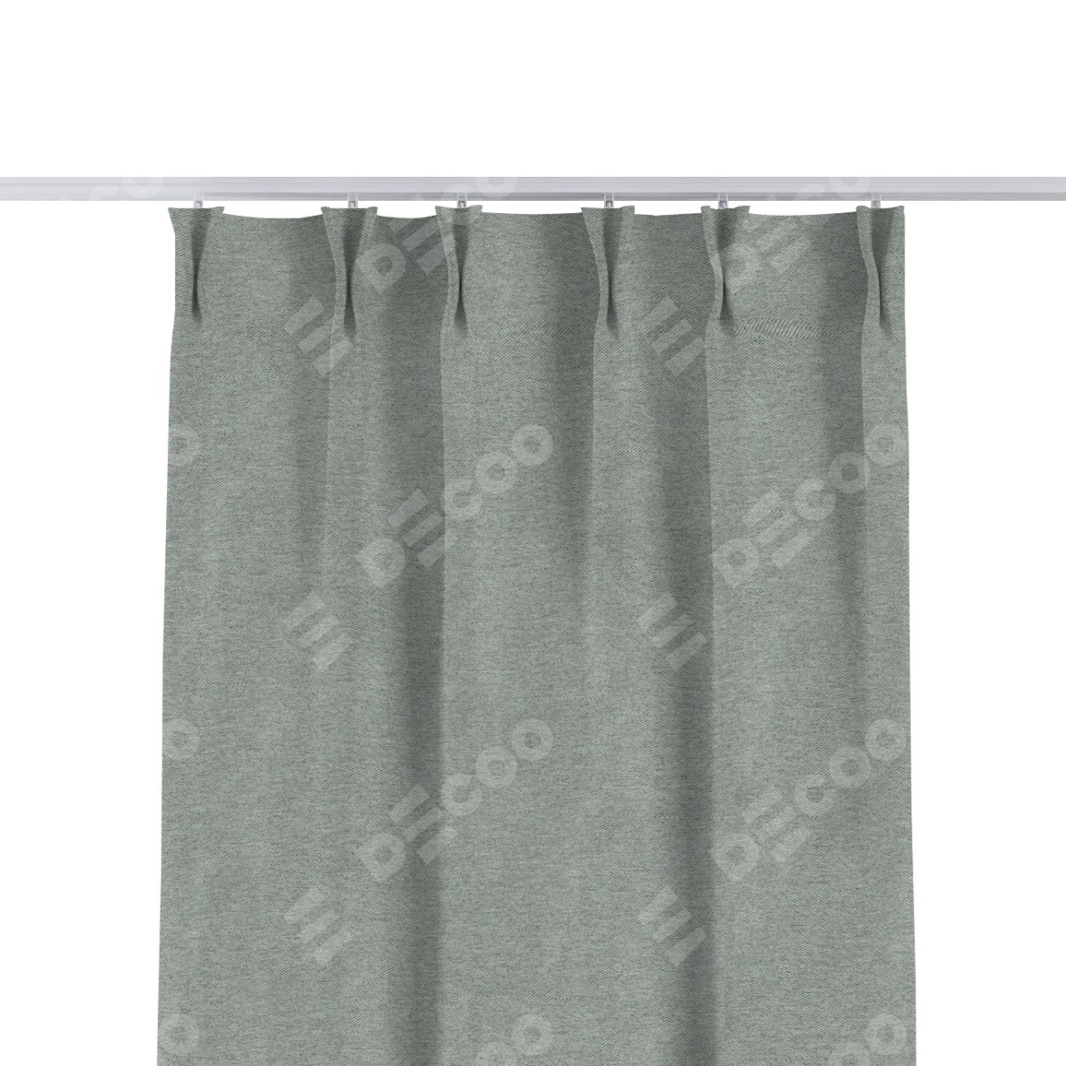 Комплект прямых штор, от производителя «Cortin», пошиты из ткани твид блэкаут светло-серый, артикул ткани 21576. С изнаночной стороны в верхней части штор пристрачивается шторная лента с декоративными складками «Кустик». Для создания элегантных складок прямые шторы шьются по стандарту с коэффициентом 1:2 (на 100 см. ширины проёма 200 см. ширины ткани).