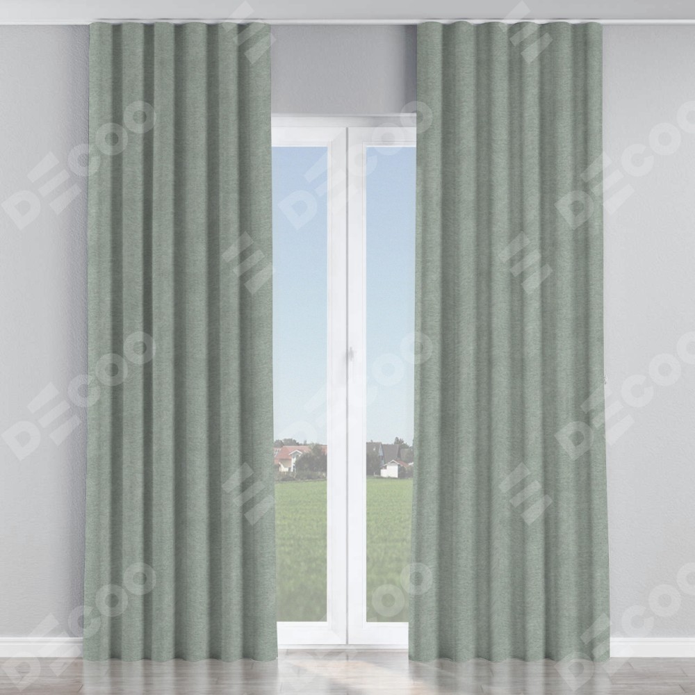 Комплект прямых штор, от производителя «Cortin», пошиты из ткани твид блэкаут светло-серый, артикул ткани 21576. С изнаночной стороны в верхней части штор пристрачивается шторная лента с декоративными складками «Волна». Для создания элегантных складок прямые шторы шьются по стандарту с коэффициентом 1:2 (на 100 см. ширины проёма 200 см. ширины ткани).