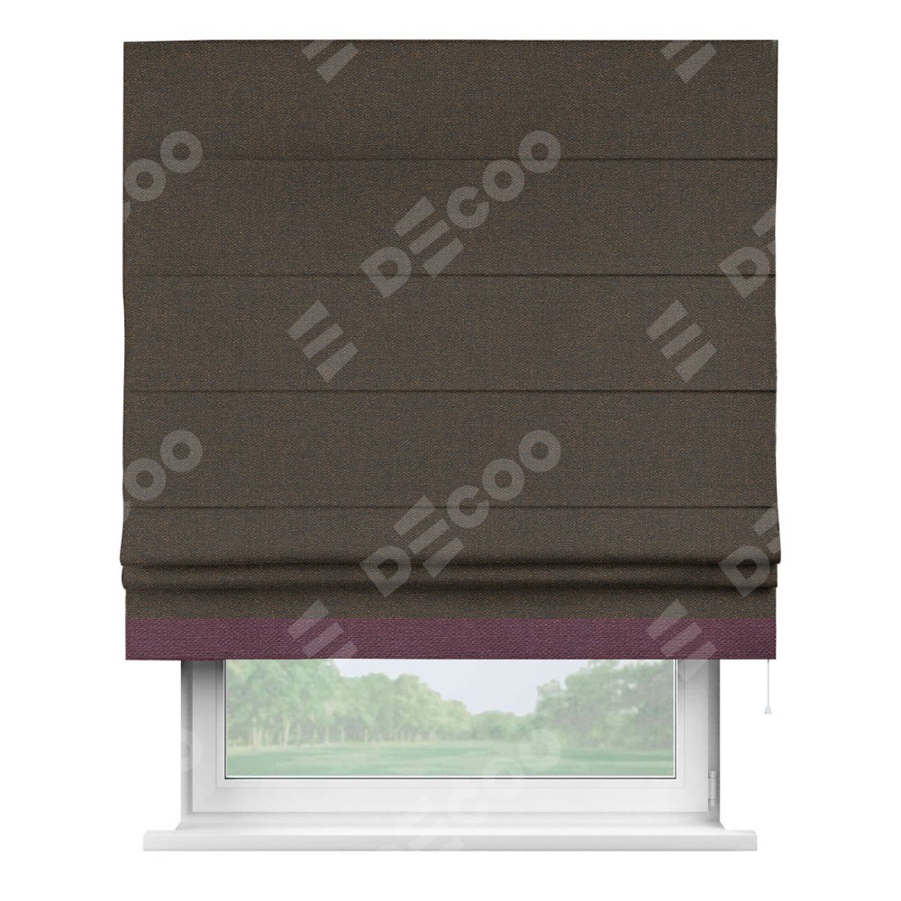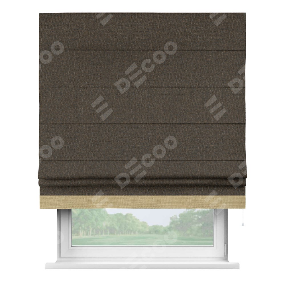 Римская штора «Кортин» с кантом Джестер, для проема, ткань лён темно-коричневый