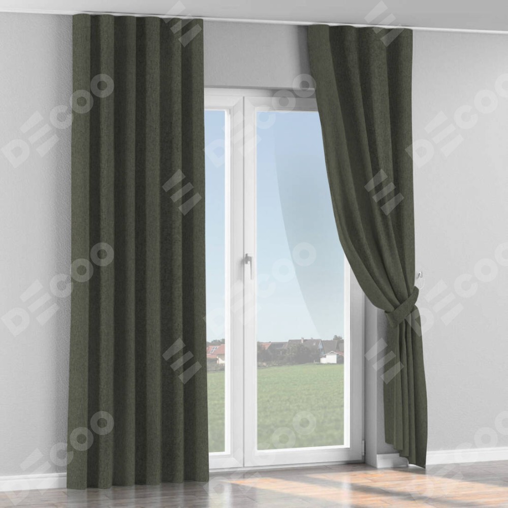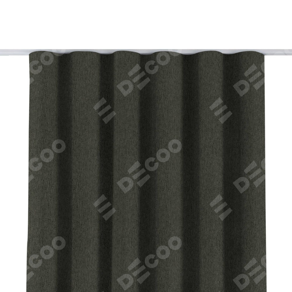 Комплект прямых штор, от производителя «Cortin», пошиты из ткани твид блэкаут тёмно-серый, артикул ткани 21587. С изнаночной стороны в верхней части штор пристрачивается шторная лента с декоративными складками «Волна». Для создания элегантных складок прямые шторы шьются по стандарту с коэффициентом 1:2 (на 100 см. ширины проёма 200 см. ширины ткани).