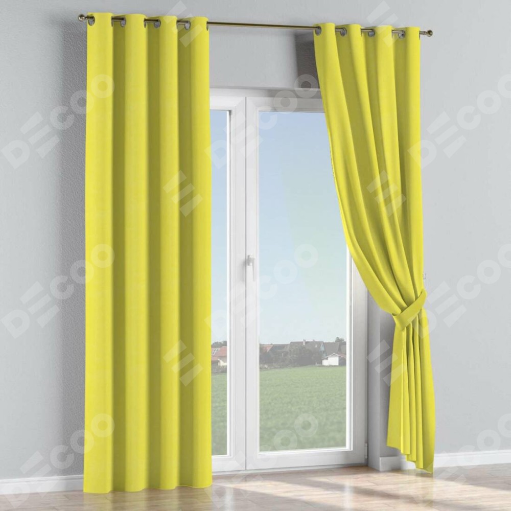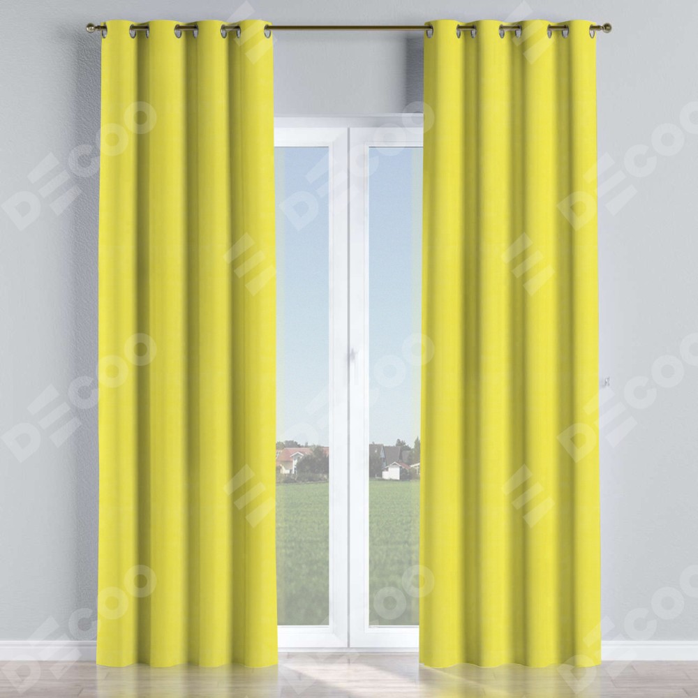 Комплект прямых штор, от производителя «Cortin», пошиты из ткани вельвет светло-желтый, артикул ткани 30997. Данная модель пошита на люверсах, комплектуется на выбор круглым карнизом и подходит для монтажа на стену или потолок. Прямые шторы на люверсах шьются по стандарту с коэффициентом 1/2 (на 100 см. ширины проёма 200 см. ширины ткани), отличительным преимуществом данной модели является простой способ монтажа. Достаточно повесить ее на трубу и штора готова!